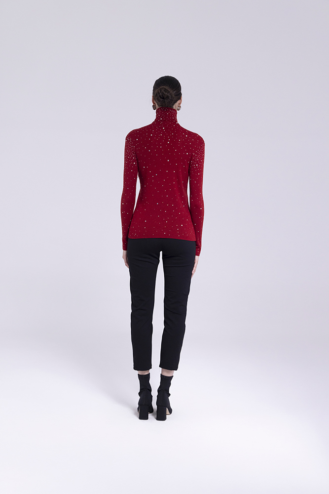 Maglioncino morbido a collo alto. Dettaglio glitter applicati.
