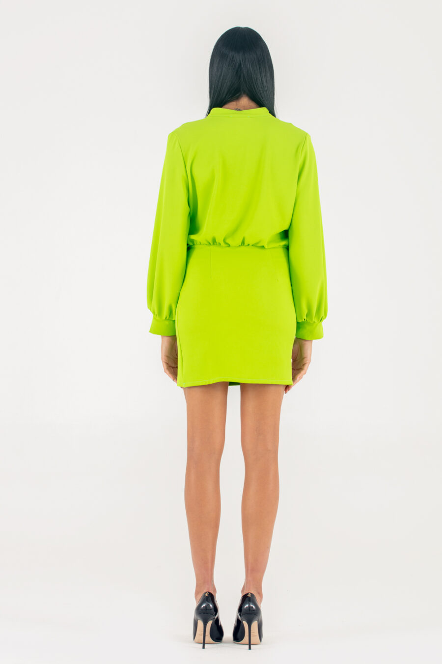 Minidress con incrocio e collo a camicia. Manica lunga con polso fisso a camicia. Dettaglio pannello anteriore. Chiusura posteriore con zip invisibile. 96%PL 4%EA